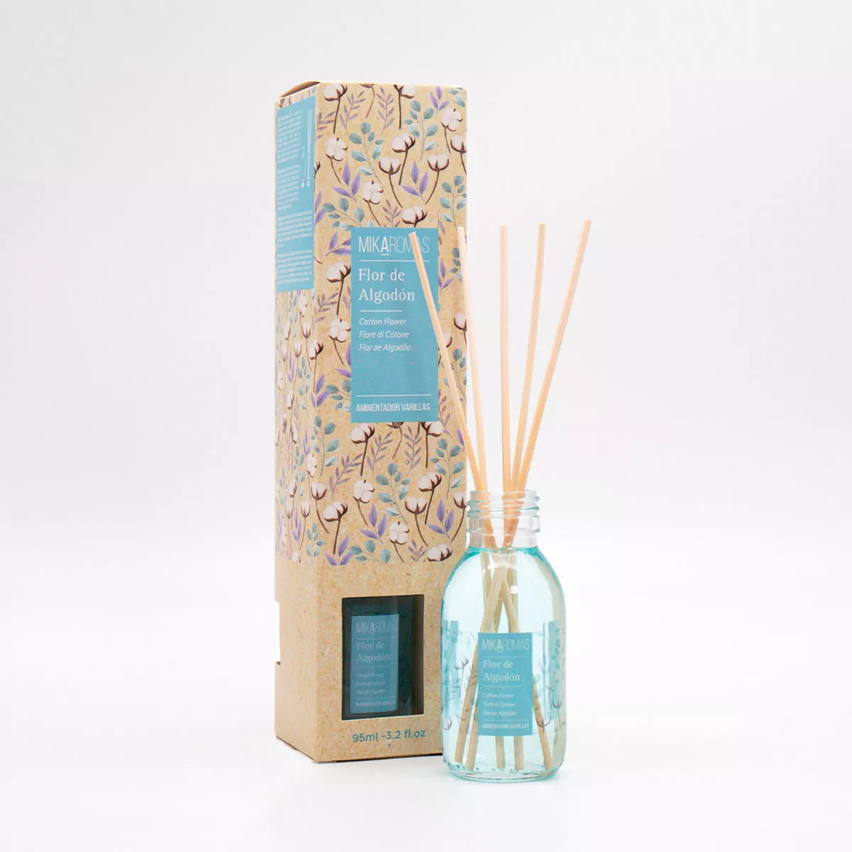 MIKAROMAS CAMPOS DE ALGODON to patyczki o świeżym i czystym zapachu, który na myśl przywodzi ogromne, puszyste pole bawełny w pełnym rozkwicie, lekkie i wolne niczym chmurki.