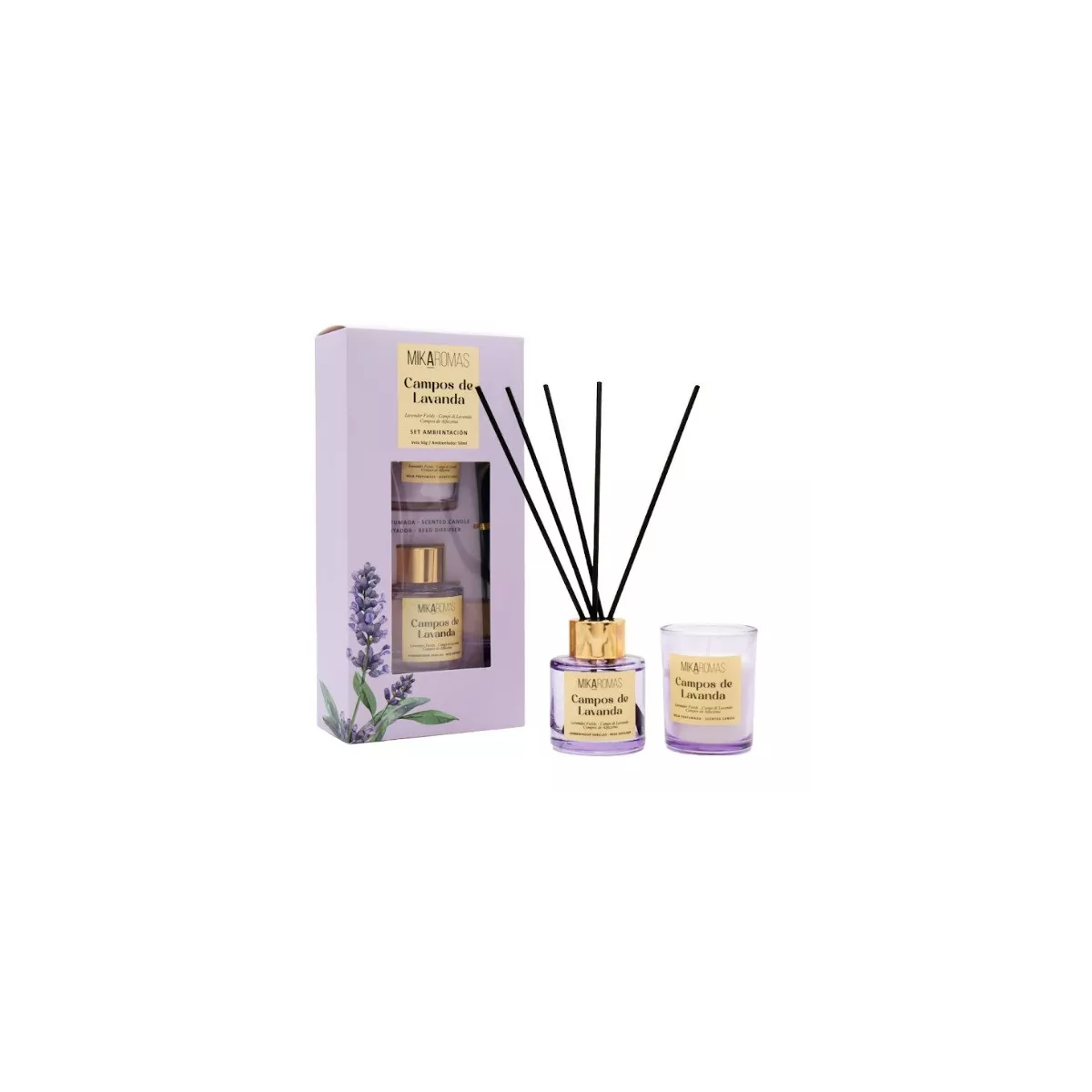 MIKAROMAS Zestaw LAWENDA patyczki zapachowe 50 ml + świeca 50 g