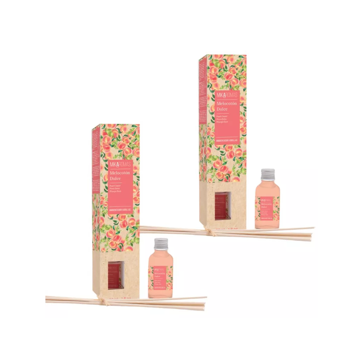 MIKAROMAS MELOCOTON DULCE to patyczki o zapachu słodkiej brzoskwini, która wypełnia całe pomieszczenie lekkim, owocowym aromatem, przypominającym słoneczne popołudnie w sadzie.
