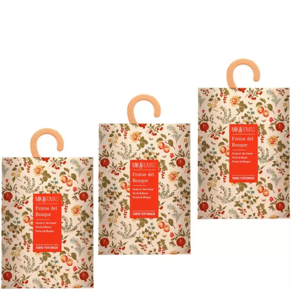 Saszetka MIKAROMAS FRUTOS DEL BOSQUE to saszetka o wyraźnym, słodkim zapachu leśnych owoców, które przywołują wspomnienie letnich spacerów, gdy zbierano owocowe dary lasu.