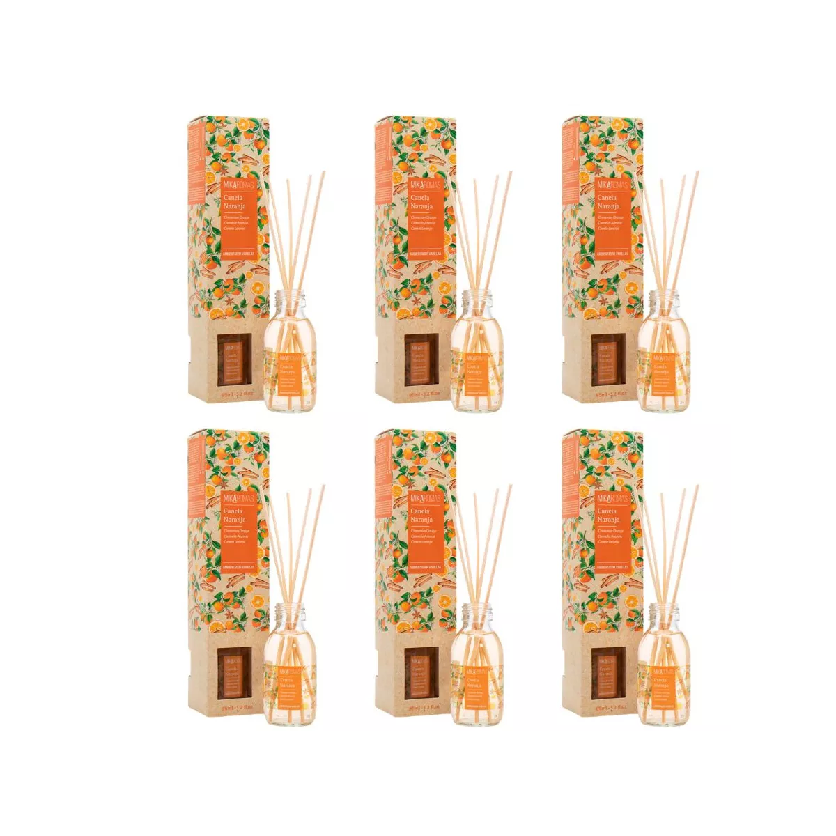 MIKAROMAS Patyczki zapachowe CYNAMON I POMARAŃCZA 95 ml, pakiet 6 opakowań